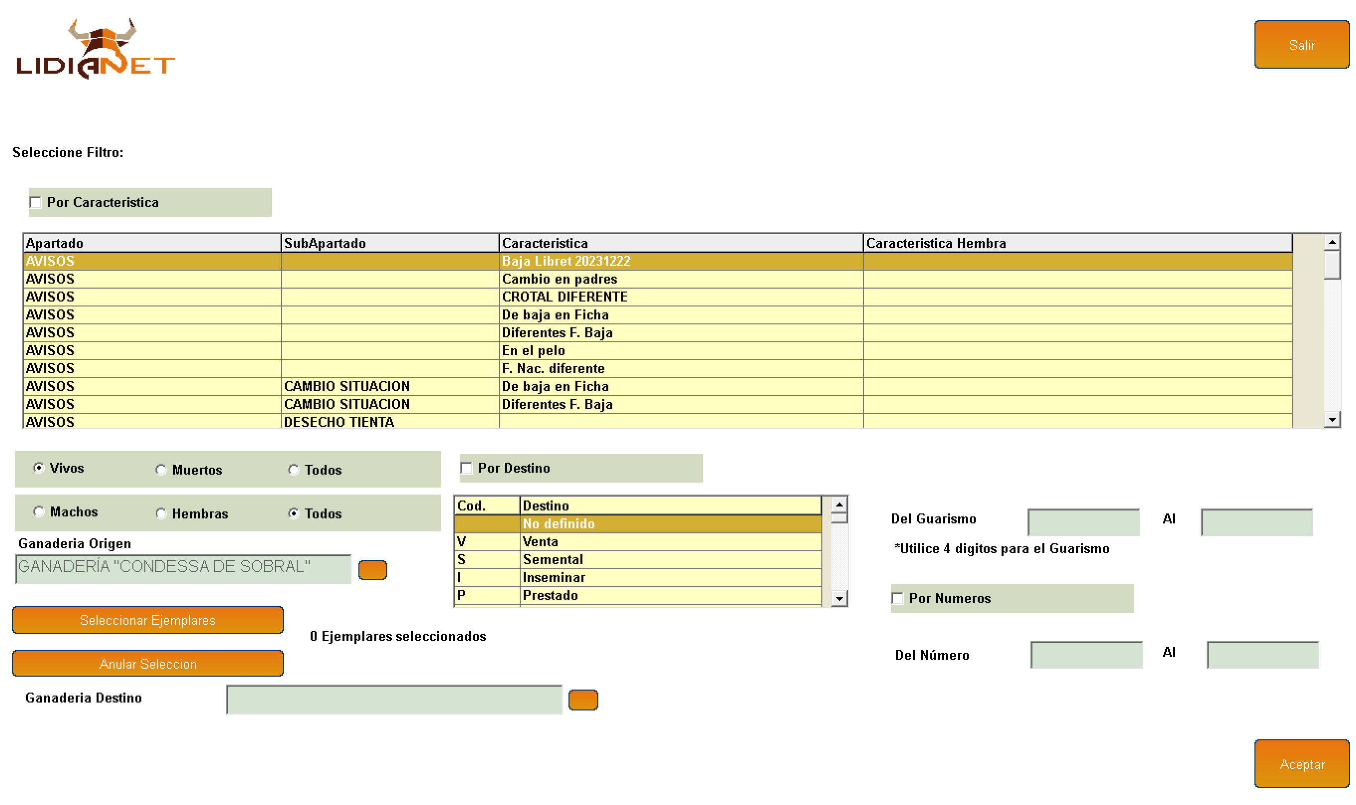 Mejoras en la utilidad para asignar ejemplares a otra ganadería.