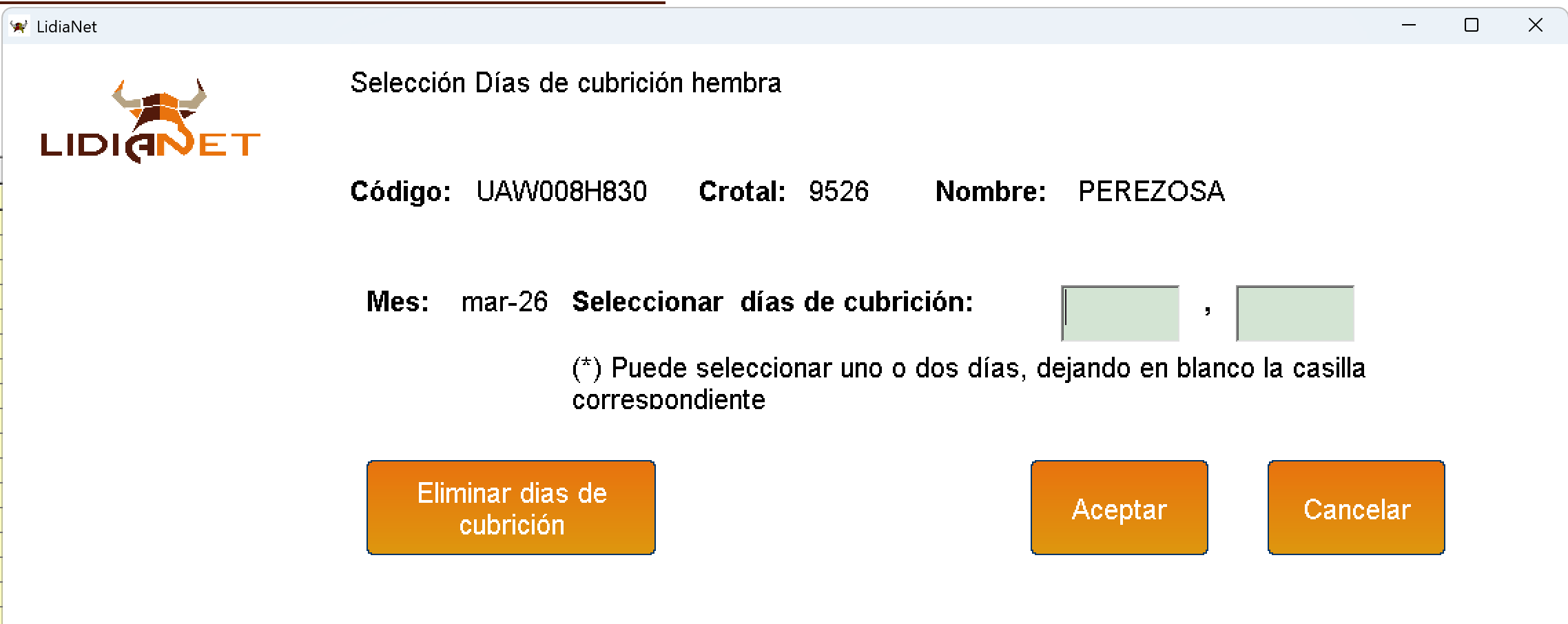 Ahora se permite añadir más de un día en un mes para marcar la salida en celo o la cubrición de la vaca. Tambien permite imprimir el controll de cubrición.