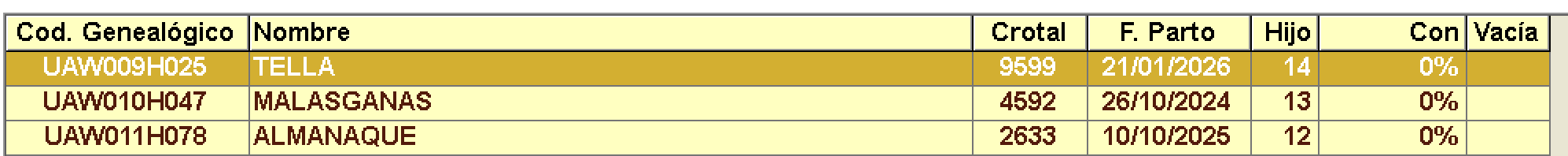 Debajo de estas fechas aparece el sexo del becerro/a y el nº/guarismo del semental con el que ha tenido el becerro/a